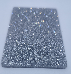 Εντυπωσιακό ακρυλικό φύλλο με ενσωματωμένο glitter εφέ που δημιουργεί μια λαμπερή και μοντέρνα επιφάνεια σε κλασική ασημί απόχρωση. Το ιδανικό υλικό για δημιουργικές εφαρμογές που απαιτούν εντυπωσιακή οπτική παρουσία και premium αισθητική.